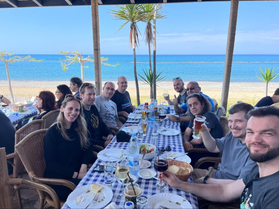 The sessions were inspiring and fruitful, but hey, we were in Cyprus! And what is Cyprus famous for if not for its excellent food and wine, beautiful beaches, and holiday vibes? We could enjoy all those things at company dinners in beautifully located Cypriot restaurants – and at amazing beaches or quiet coves.