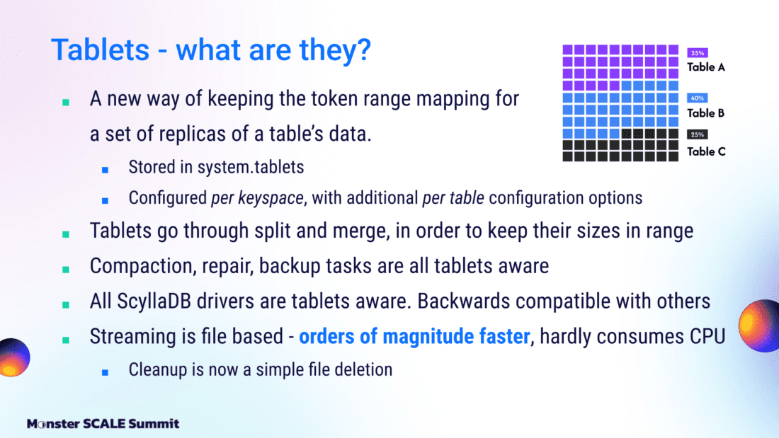 A few things make this genuinely different from the vNodes design that we originally inherited from Cassandra, but replaced with tablets: