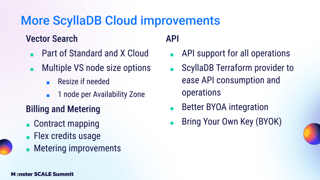 And here’s a look at additional ScyllaDB Cloud updates before we move on: