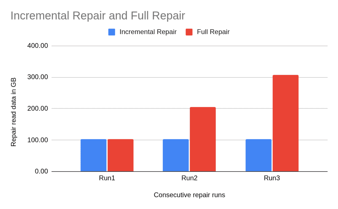 We created two modes of incremental repair: incremental and full. In incremental mode, only SSTables in the unrepaired set are selected for the repair process. Once the repair completes, those SSTables are marked as repaired and promoted into the repaired set. This should be your default mode because it significantly minimizes the IO and CPU required for repair.